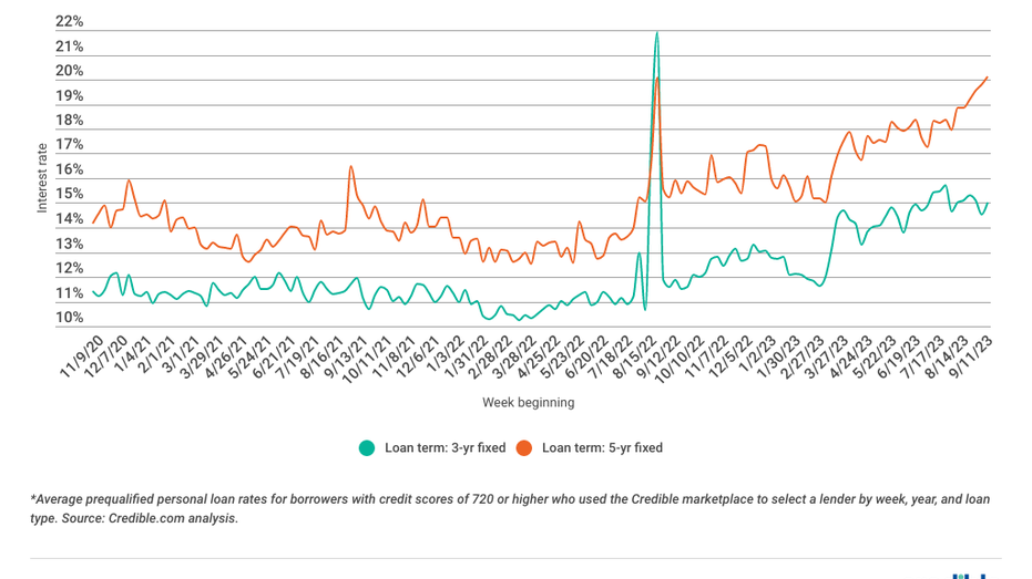 Here are the latest trends in personal loan interest rates from the Credible marketplace, updated weekly.